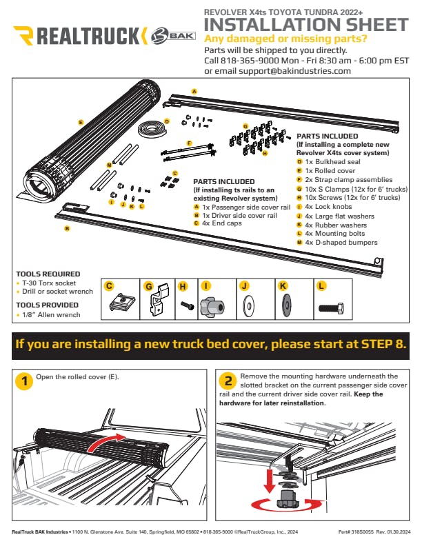 Experience the next generation of protection and cargo management with the BAK Revolver X4ts from RealTruck. The highly popular Revolver's latest iteration improves upon an already highly functional design. Constructed from durable marine-grade vinyl atop heavy-duty, cut-resistant aluminum slats, the new BAK Revolver X4ts features full matte-black styling that extends to every component so that, open or closed, the cover looks its stealthy best! But the Revolver X4ts isn't just about what you haul inside the bed. The bed rails are fitted with integrated T-slot channels that enable you to mount various over-the-bed racks and cargo management accessories, giving your truck a level of capability that goes beyond the average tonneau cover. And with the cover rolled fully forward, the Revolver X4ts provides access to the full bed so you can have your rack and easily access your cargo too. The NEW Revolver X4ts benefits from full-perimeter weather seals to relentlessly protect your gear. From a heavy-duty bulkhead seal to durable flat side seals and redesigned rear corner caps, the entire cover assembly ensures you the sleekest, most weatherproof bed cover you can find! While superior weather resistance is great for keeping your cargo dry, BAK Revolver X4ts is also exceptionally secure with patented rotational locking rails and an easy-to-use locking mechanism, making for an intuitive experience, allowing simple one-handed operation from either side of the tailgate. So, if you're looking for a truck bed cover that's easy to install and even easier to live with, turn to the one that has it all. Treat your truck to the style, utility, and security of BAK Revolver X4ts.