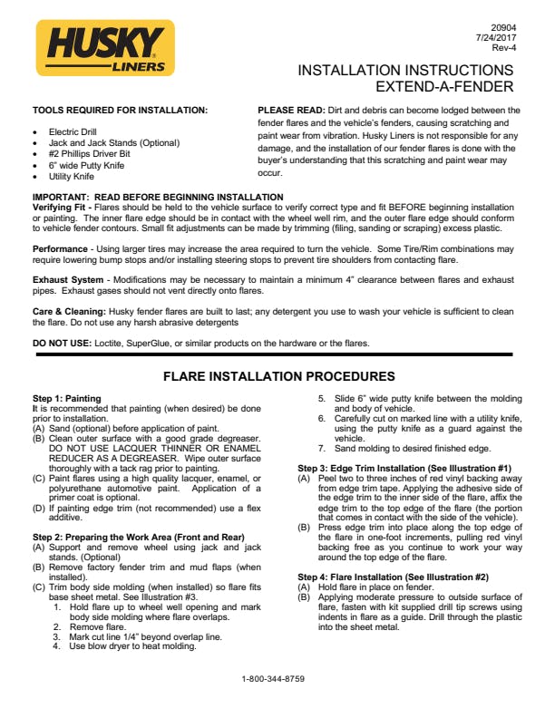 - Extend-A-Fender(R) Flares are covered by Husky Liners Limited Lifetime Warranty, featuring Husky's legendary durability, so they're built to last. Proudly made in the USA with global materials.