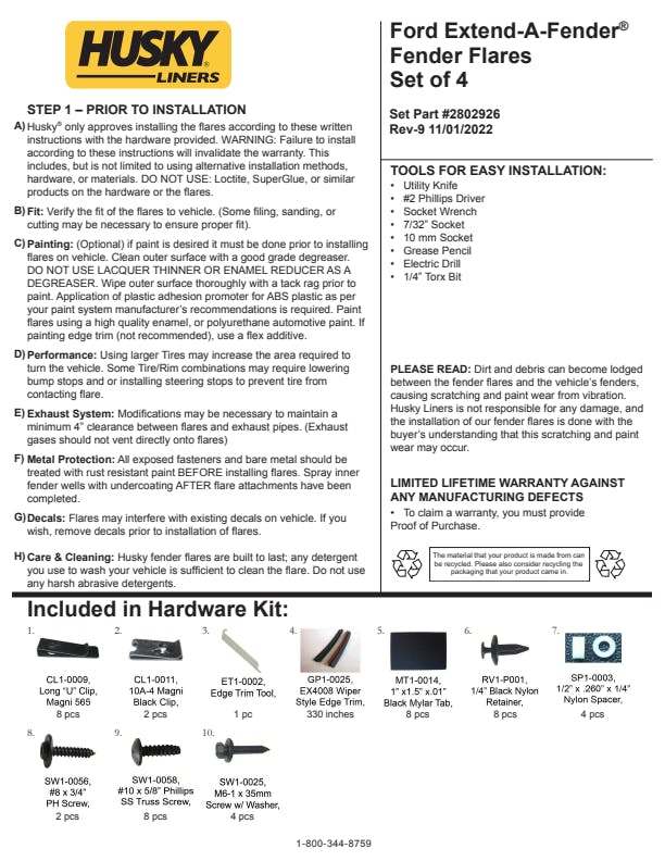 - Extend-A-Fender(R) Flares are covered by Husky Liners Limited Lifetime Warranty, featuring Husky's legendary durability, so they're built to last. Proudly made in the USA with global materials.