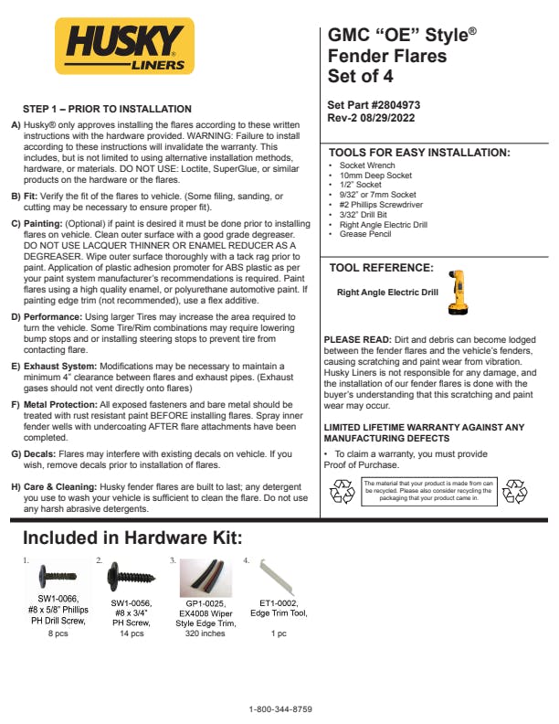 - OE Style fender flares are covered by Husky Liners Limited Lifetime Warranty. Featuring Husky's legendary durability, so they're built to last. Proudly made in the USA with global materials.