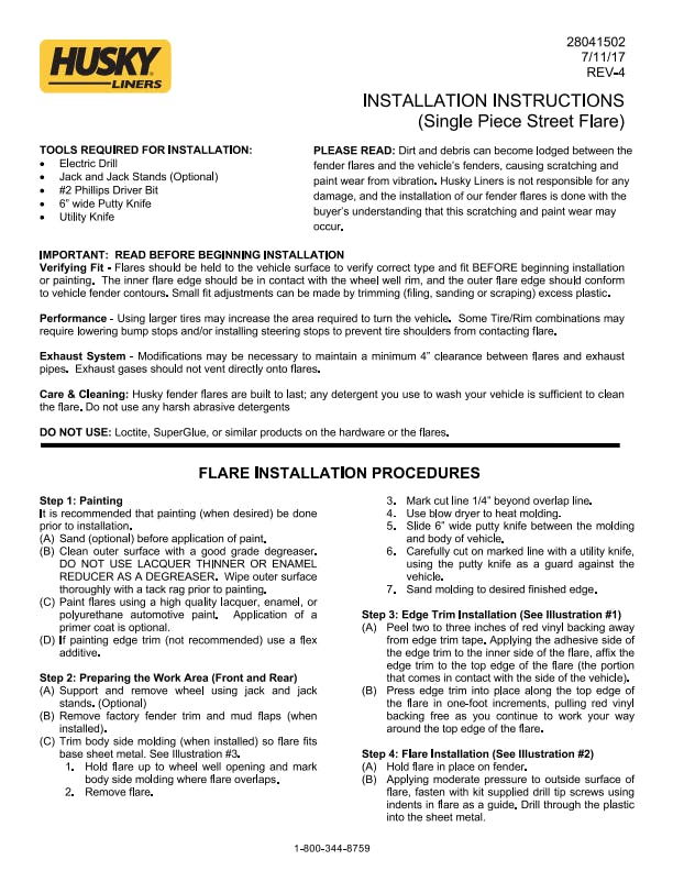 - OE Style fender flares are covered by Husky Liners Limited Lifetime Warranty. Featuring Husky's legendary durability, so they're built to last. Proudly made in the USA with global materials.