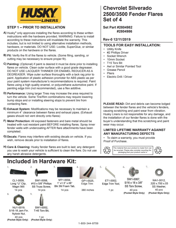 - Pocket Style Fender Flares are covered by Husky Liners Limited Lifetime Warranty, featuring Husky's legendary durability, so they're built to last. Proudly made in the USA with global materials.